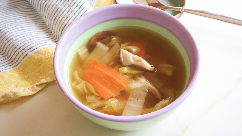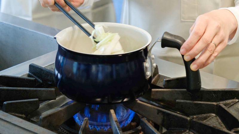 まずは<セラプロテクトシリーズ マルチポット KNC-018S> でのスープ作りから。「しょうががたっぷり入っているので、体が温まります。ご自宅で作る際はお好みでしょうがの量を調整してくださいね」とアヤコさん。
