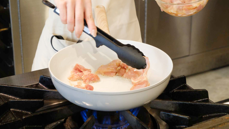メインおかずの「味噌しょうがチキン」は、〈セラプロテクトシリーズ フライパンKFO-026〉で作ります。