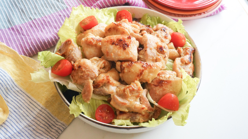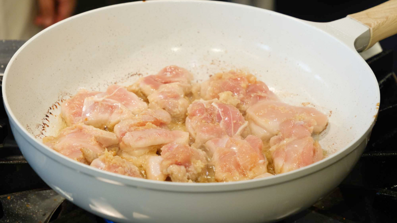 「味付けした鶏肉を冷たい状態から焼くと、旨味と一緒に水分も出てしまい、パサつきの原因になります。冷蔵庫から出して常温で30分ほど置いてから焼くのがおすすめです」とアヤコさん。