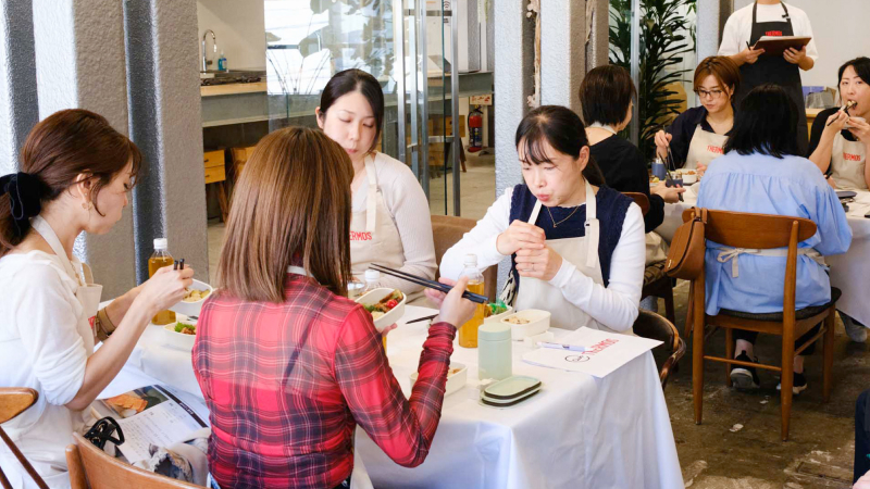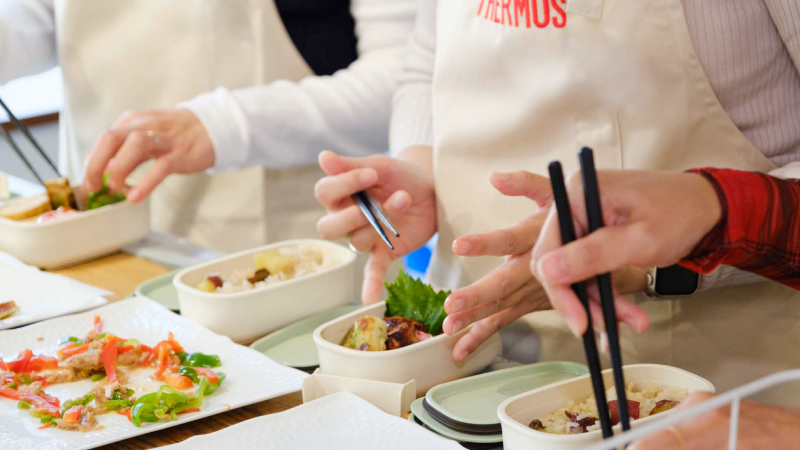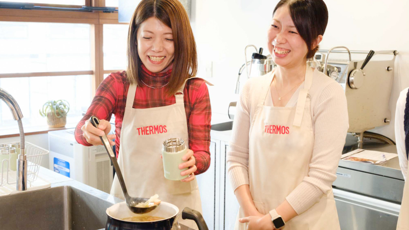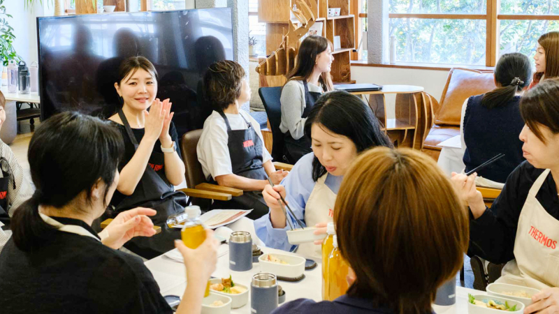 2025年10月10日(金)、「CLUB THERMOS」主催で、料理家 のアヤコさんによるお弁当料理教室を開催しました。昼・夜の2部制で、お弁当のおかずやスープを作り、さらにお弁当箱への詰め方までをアヤコさんがレクチャーします。「お弁当作りはいつもひとり。でも今日はみんなとわいわい作れて楽しかった!」とのお声をいただくなど、明るくにぎやかな時間となりました!