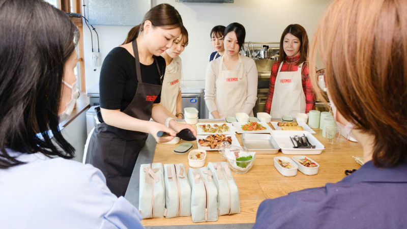 今回は北海道から沖縄在住の方まで250名を超える応募があり、昼・夜の部合わせて15名が参加しました。アヤコさんを慕うファンが多く、新幹線や飛行機で訪れる方も!普段から料理をされている方が多く、お弁当箱を始めとするサーモス製品にも興味を持って来場してくださいました。