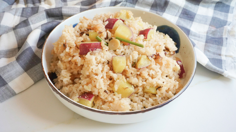 このほか、アヤコさん考案のさつまいもの炊き込みごはんもあらかじめ用意しました。お弁当箱に一緒に詰めて完成させます。