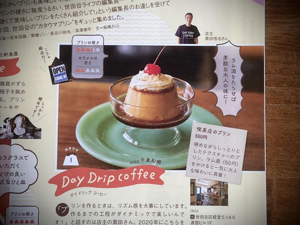 ホントはプリンカップを巡る顛末もあったのですが、それだけでコラムもう一本分くらいになってしまうのでこの辺で。ちなみに取材に来た編集者の方々は、撮影後にちゃんとプリンを試食して廻っていました。それを一日に何店舗も廻っていたそうです。これはお店を見つける嗅覚だけじゃなく、胃腸も丈夫じゃないと務まらないハードなお仕事だなぁと感心しました。今回はプリンの美味しい店で掲載されましたが、いつかコーヒーの美味しい店としても取り上げていただけるよう精進します!笑