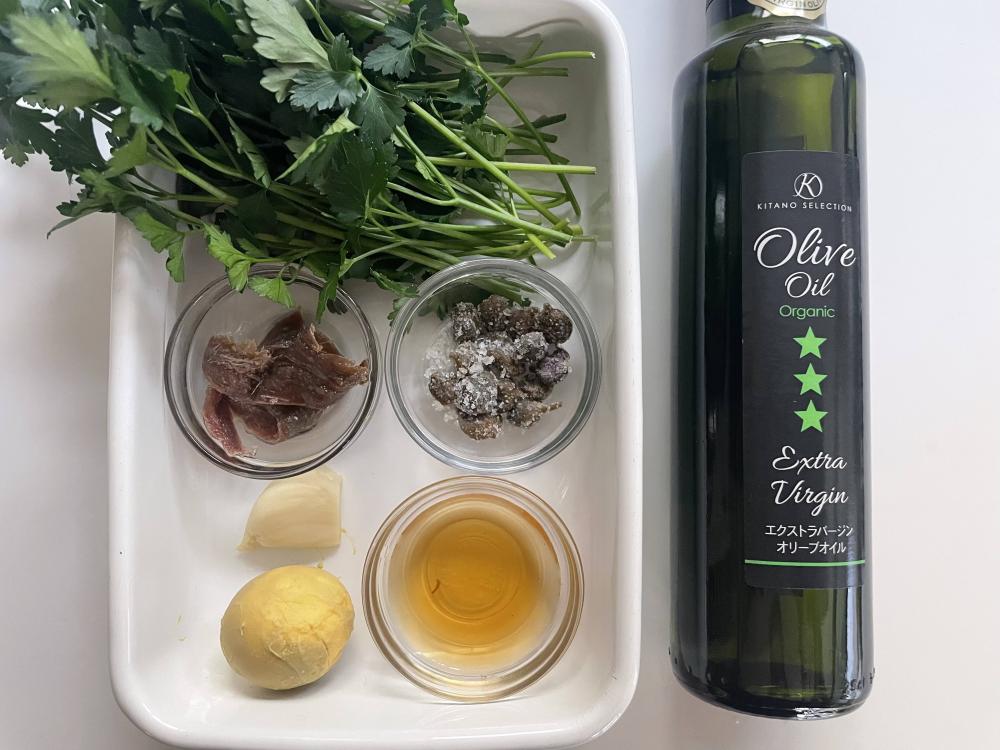 どっさりのパセリに、アンチョビとケッパーの塩気。