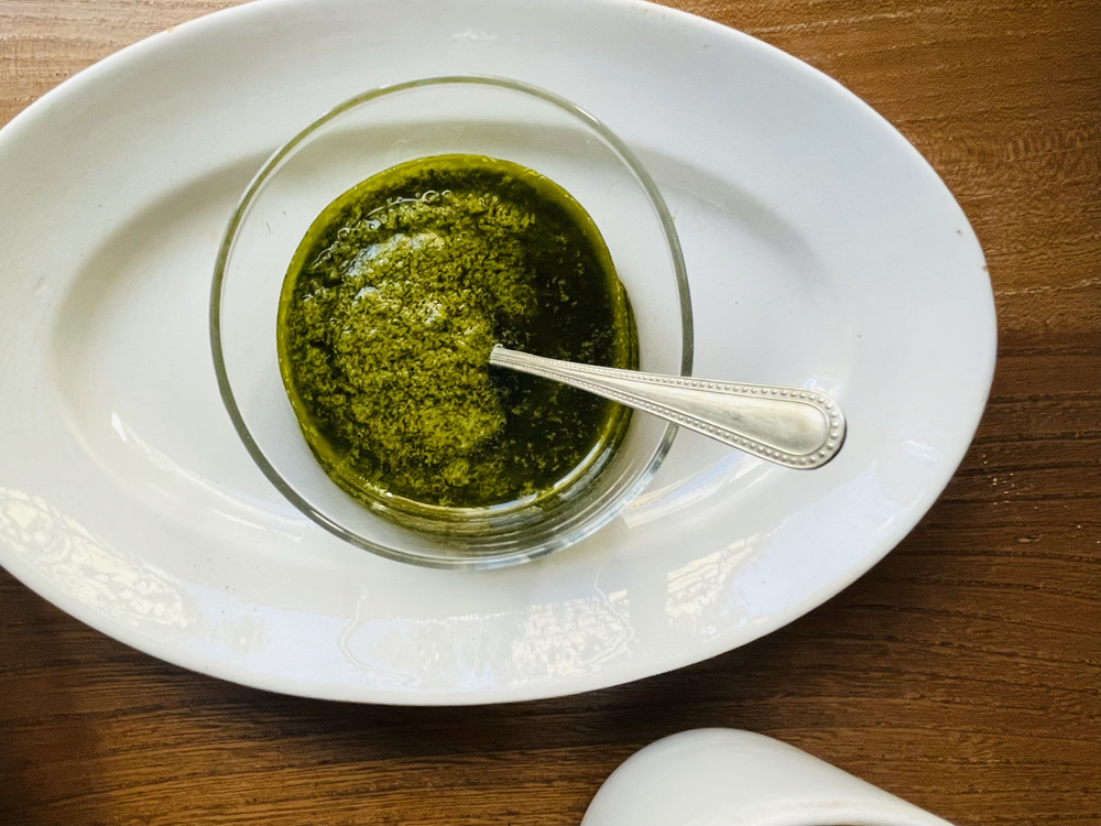 ソースの緑色が深くて美味しそう!