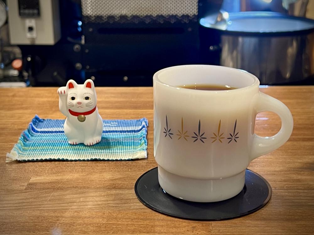 招き猫の写真に、平和をしみじみ感じます。世界中の人が美味しいコーヒーを心から安心して飲めますように。