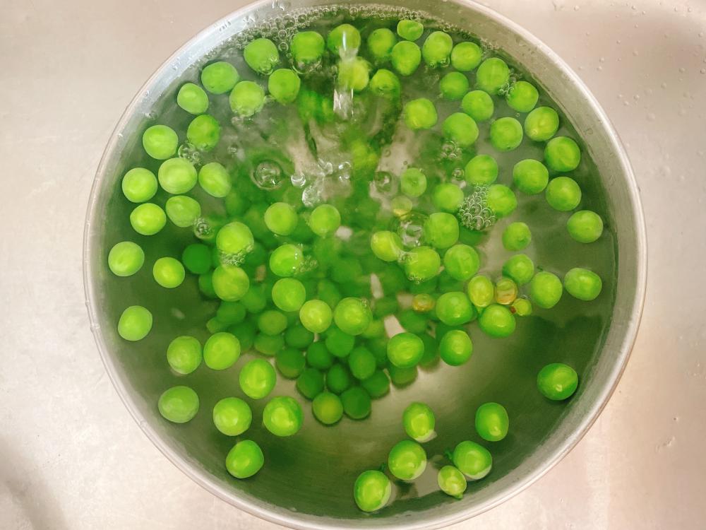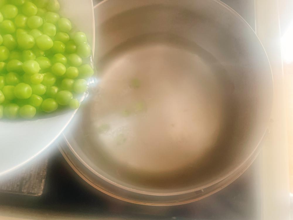 | ③ | 鍋に湯を沸かし、塩を適量入れて豆を入れ、5分ほどゆでたら火を止める。