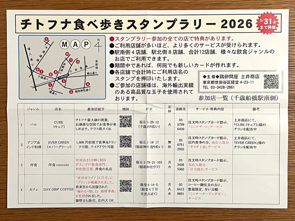 千歳船橋は馴染みがありませんが、スタンプラリーと聞くと参加したくなります。卵屋さんにもこだわりが感じられます。